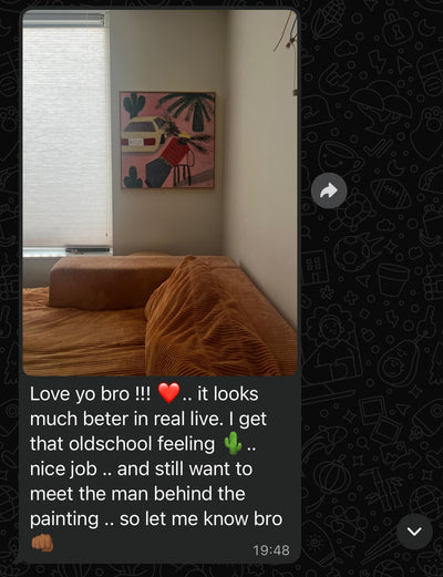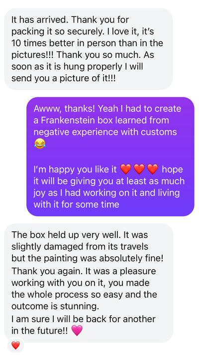 As you see in the product description, "Canvas Print", which means this is printed. However, if you want to purchase an original painting, you can check some of the limited paintings under "Originals", if they are still available.