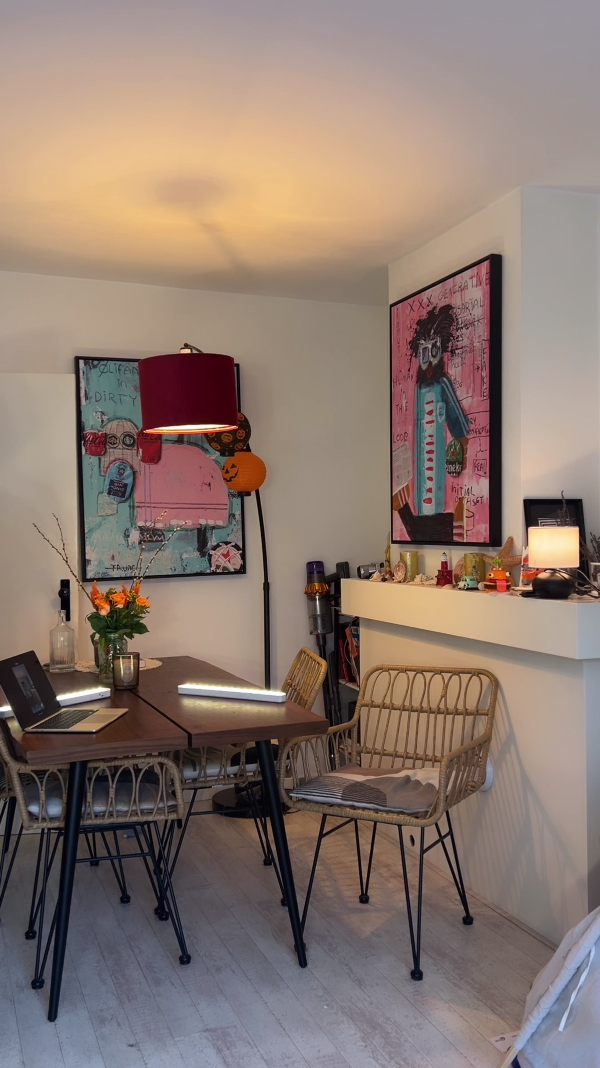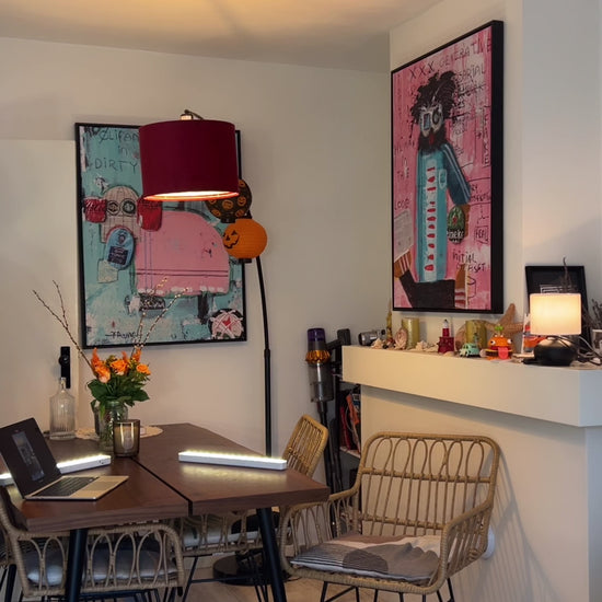 Gio Manveli used to spend his days in meetings and spreadsheets—until one day he noticed how beautiful a messy chair looked in the corner of his room. That little moment changed everything. Now, he paints the quiet, honest parts of life—beds that aren’t made, messy dining table with underwear on it, and outgoing characters enjoying Amsterdam life. His art feels like walking into someone’s memory. Gio believes walls should have stories, not just decorations—and he’s here to help yours tell one.