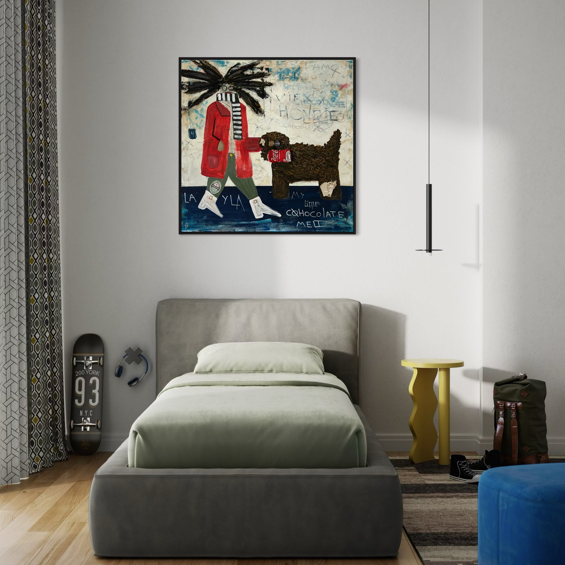 Gio Manveli used to spend his days in meetings and spreadsheets—until one day he noticed how beautiful a messy chair looked in the corner of his room. That little moment changed everything. Now, he paints the quiet, honest parts of life—beds that aren’t made, messy dining table with underwear on it, and outgoing characters enjoying Amsterdam life. His art feels like walking into someone’s memory. Gio believes walls should have stories, not just decorations—and he’s here to help yours tell one.