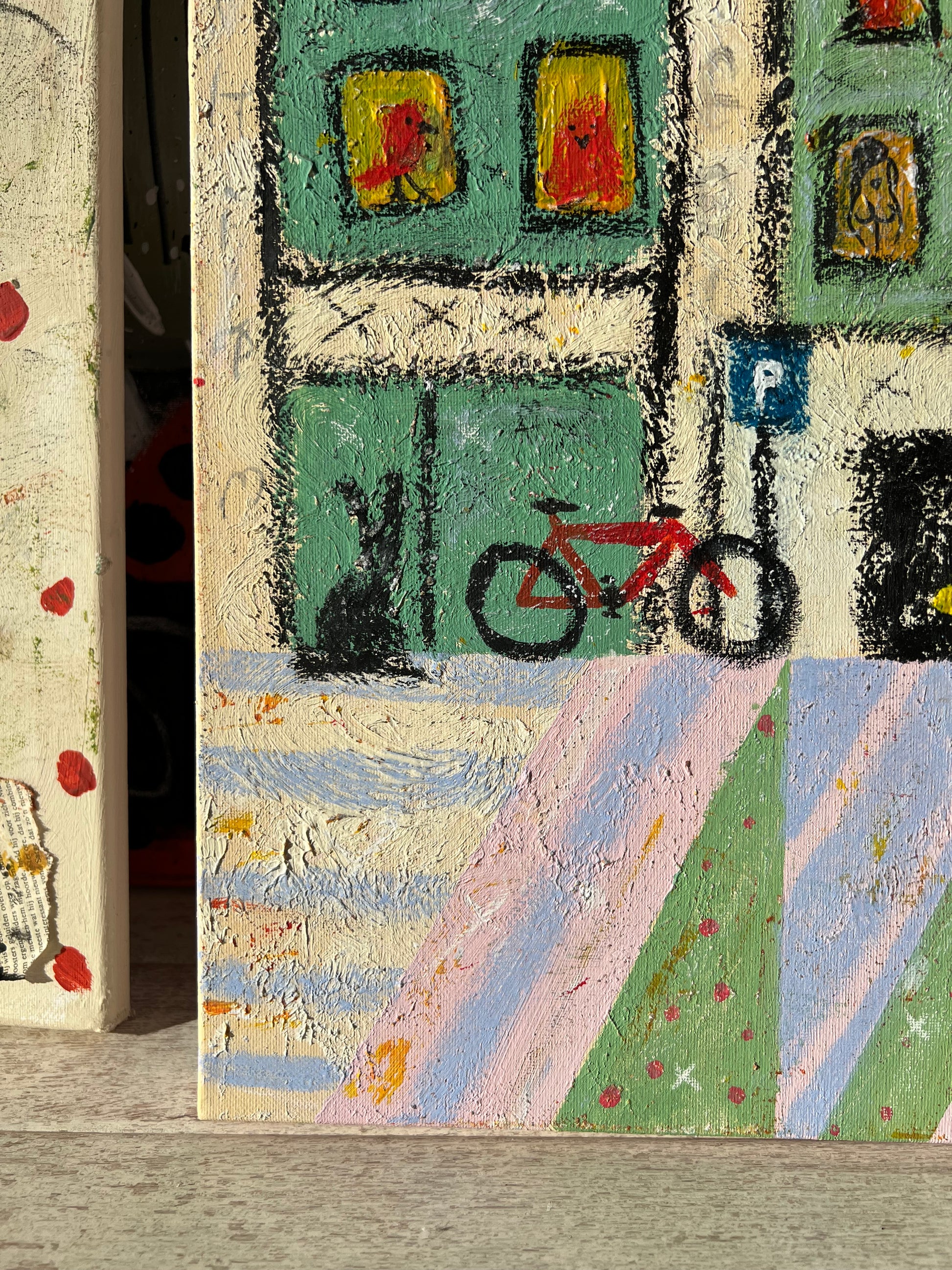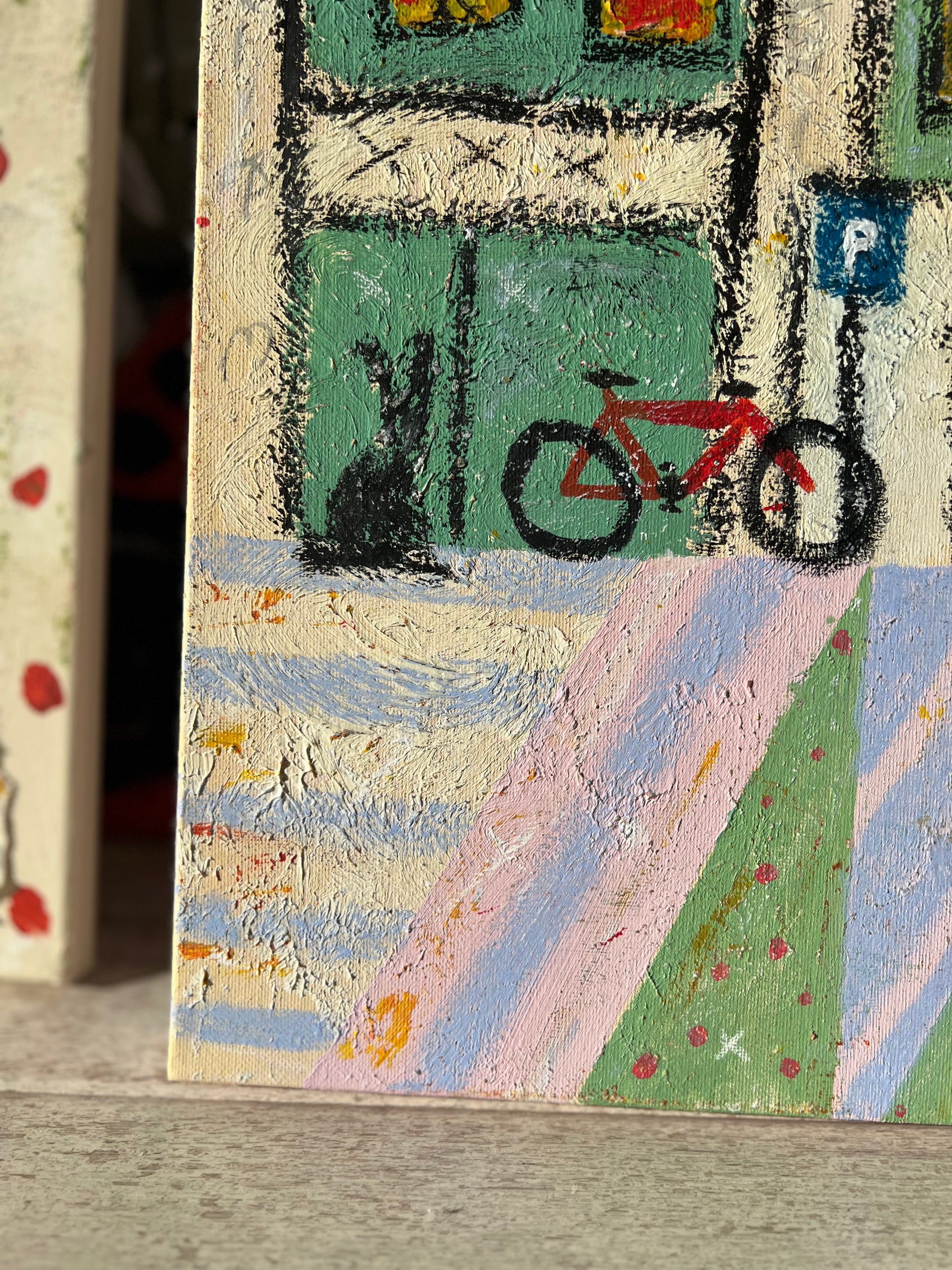 Gio Manveli used to spend his days in meetings and spreadsheets—until one day he noticed how beautiful a messy chair looked in the corner of his room. That little moment changed everything. Now, he paints the quiet, honest parts of life—beds that aren’t made, messy dining table with underwear on it, and outgoing characters enjoying Amsterdam life. His art feels like walking into someone’s memory. Gio believes walls should have stories, not just decorations—and he’s here to help yours tell one.